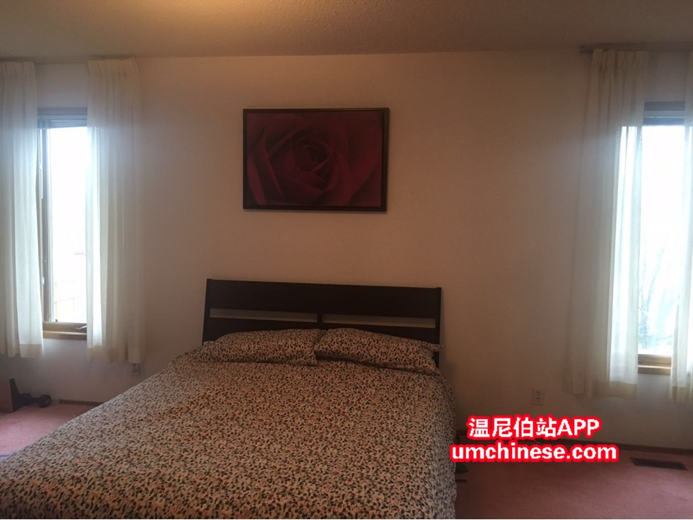 二楼主卧出租,8月中旬可拎包入住,包水电网,家俱。门口72 路公交车直达曼大,183路公交车直达downtown. House居住人少,安静。电话:204-220-9811