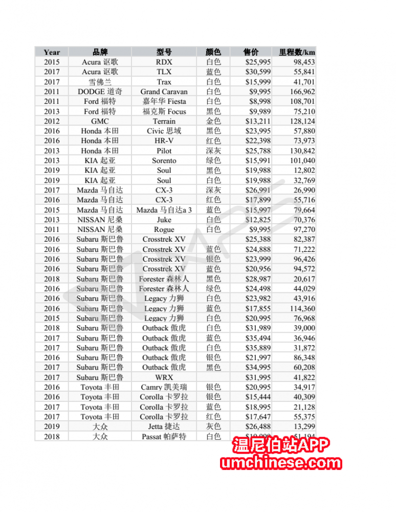 最新二手车库存汇总贴 如有中意车辆欢迎加微信详询