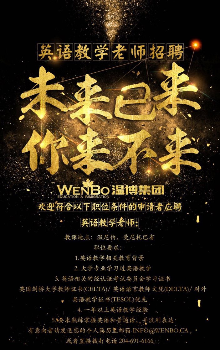 【温博🇨🇦集团】英语教学(English as a Second Language)老师招聘!拥有相关背景,相关学历,相关证书的你,还在等神马?!Join our team, chase your dream. It’s your show time! 简历投递至:i ...