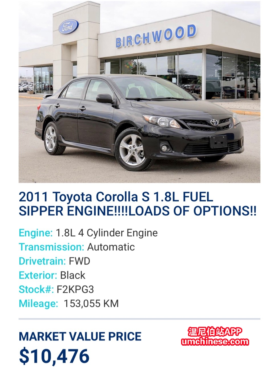 我店新到 2011年丰田卡罗拉 车况良好、超级节油 仅$10476 详询 ———————————— Birchwood Ford 华人顾问 Jack Zhang 电话 204-898-7766 微信 JackZhangCanada ———————————— ...