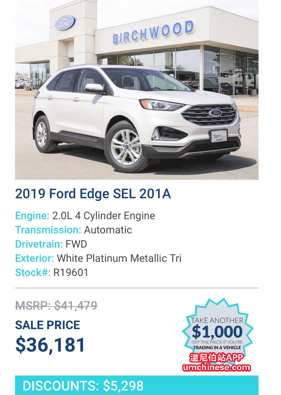 我店目前有21台福特锐界新车特价出售 SEL 舒适版 减$5000以上 Titanium 至尊版 减$6000以上 ST 豪华运动版 减$7500 详询 ———————————— Birchwood集团 华人顾问 Jack Zhang 电话 204-898-7766 微信 Jac ...