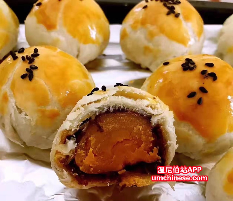 蛋黄酥有豆沙肉松馅 紫薯肉松 莲蓉肉松 还有好多口味不断更新哦 还有新品老婆饼 酥得掉渣 内馅很香没那么甜 喜欢吃的盆友们可以找我预定