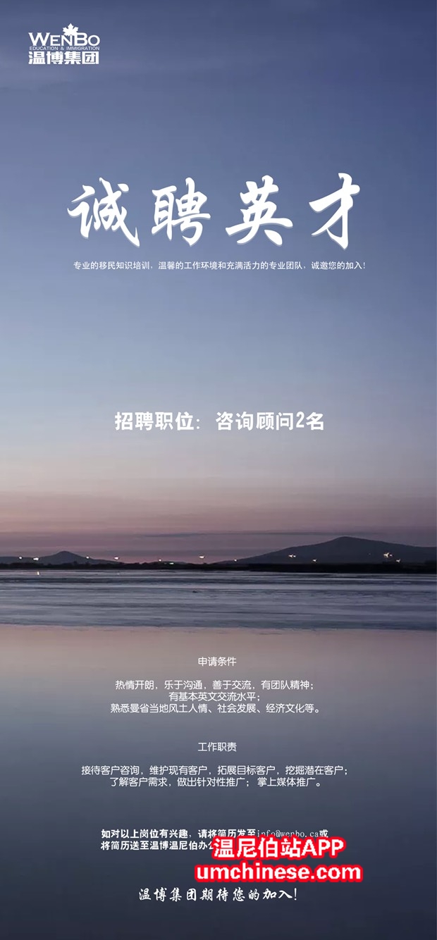 招聘啦!因业务扩展需要,「温博集团」诚聘全职咨询顾问2名!要求乐于沟通,善于交流,熟悉曼省风土人情。主要负责维护现有客户,拓展目标客户,同时兼顾市场推广工作。有意者请将简历发送至[email protected]或直接投递 ...
