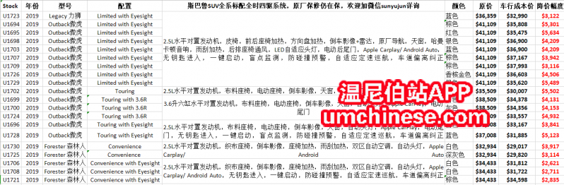 2019款库存斯巴鲁清仓销售中,中型SUV森林人Forester,傲虎Outback Must-Go Deal!史无前例的低价!低利率! (所有库存车均有10,000-15,000kms mileage,所有车原厂保修均在保,以下全部为成本价清仓)贷款利率: ...