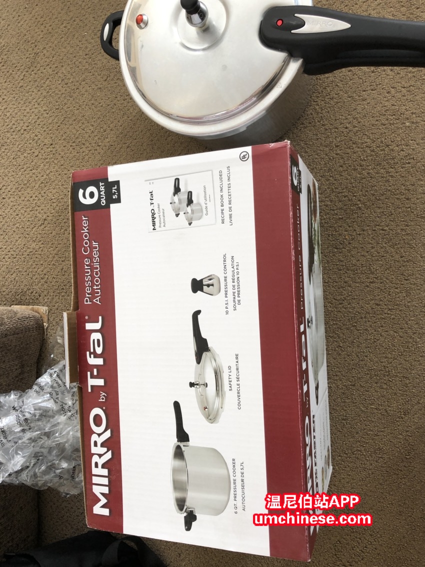 T-fal 5.7L,6杯压力锅,9成新,沃尔玛买的,搬家出