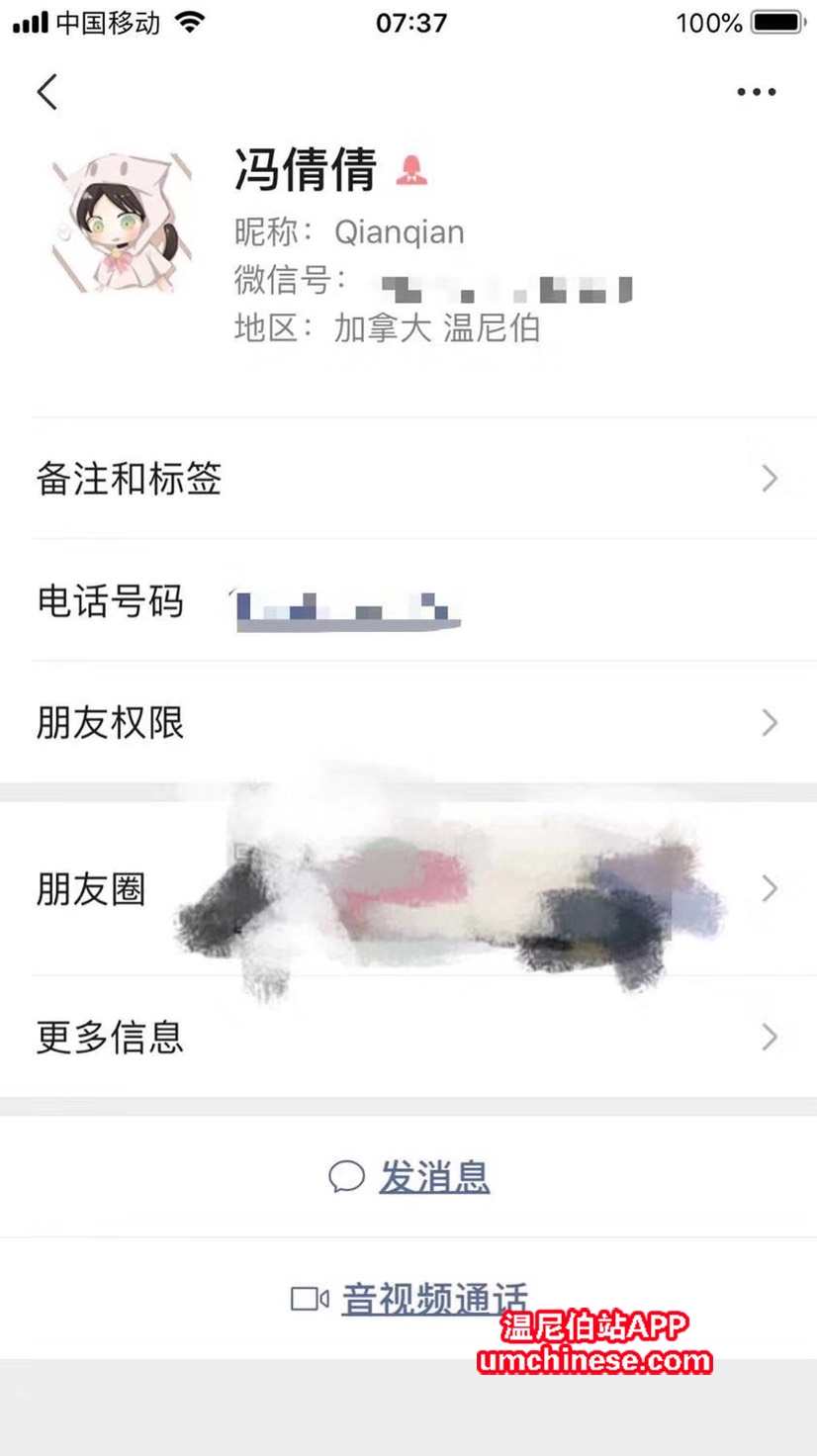 冯倩倩,20岁,2019年到达温尼伯,大一,建筑系环境设计专业。如果有认识她的小伙伴能够确保她的安全,请联系我,她的母亲很着急,谢谢