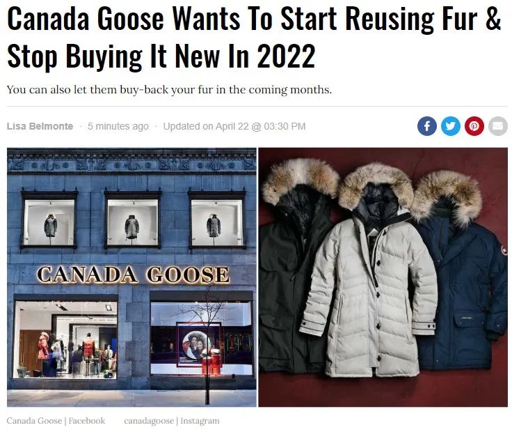一直以来,加拿大知名服装品牌Canada Goose都因采用动物皮毛而遭到动物保护者的**。 为了将服装的时尚 与可持续发展的目标结合,Canada Goose于近日宣布:计划回购市面上的旧皮草,并于2022年停止购买皮草。↓ ...