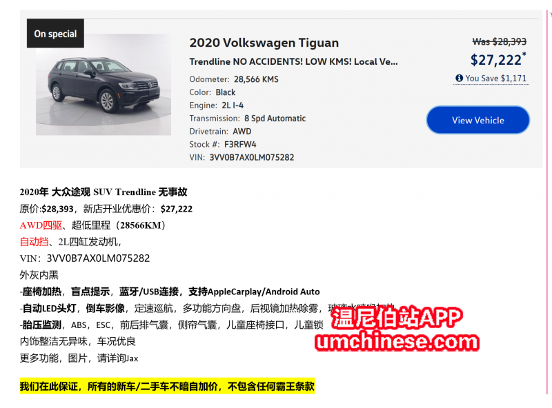 Birchwood Volkswagen将与2021年3月20日(星期六)正式开业与广大客户朋友们见面,现向大家宣传车行为大家精选的二手大众途观二手车 开业期间热烈欢迎广大华人朋友前来开车,为增进大众车行与本地华人社区的 ...