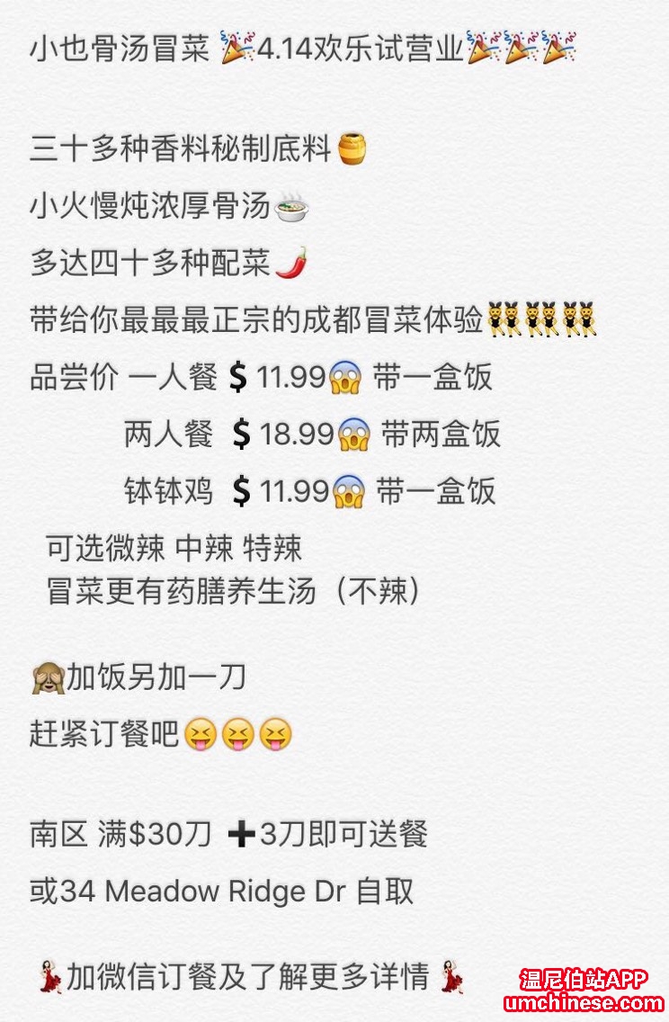 小也骨汤冒菜 现在开始接受明天的订单啦啦啦 饭点还在犹豫吃什么吗?赶紧戳微信 把美味带回家