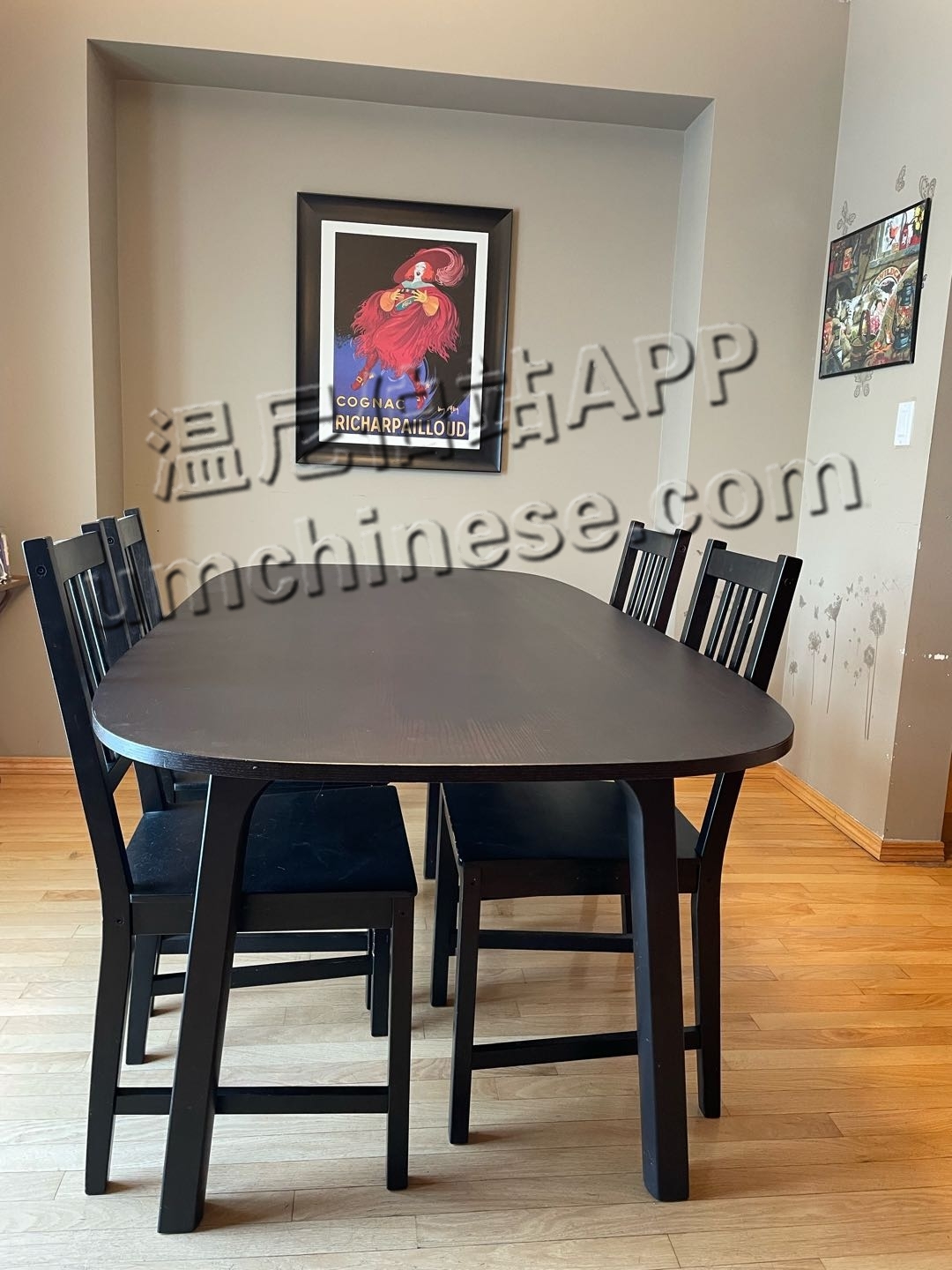 桌子尺寸:长:185*宽:90*高:72 桌子椅子价格:300刀(不单卖) 微信:18611836048