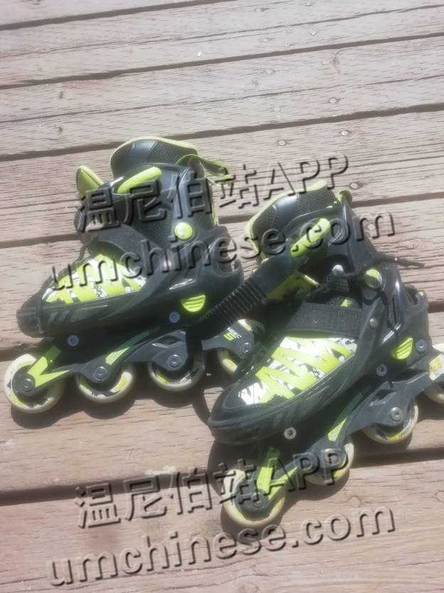 出两双儿童轮滑鞋,黄色鞋size:1--4号可调。绿色鞋size:3--6号可调。送安全帽,每双$20。burland自取,站内短信联系或电话联系:2044176289。