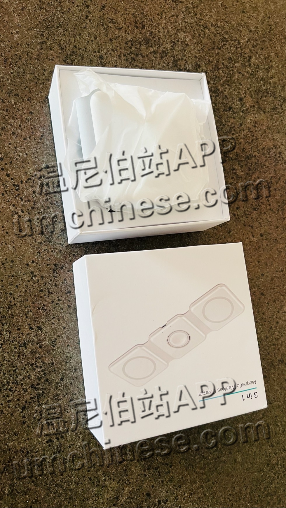 三合一无线充电器折叠磁吸双项快充适用于magsafe苹果14手表iPhone13手机iWatch耳机全家桶,刚盆友帮我从国内捎过来,却发现我的airpods没有magsafe盒子所以没法充,淘宝天猫店购买,原价出,21刀,只收现金,kirkbri ...