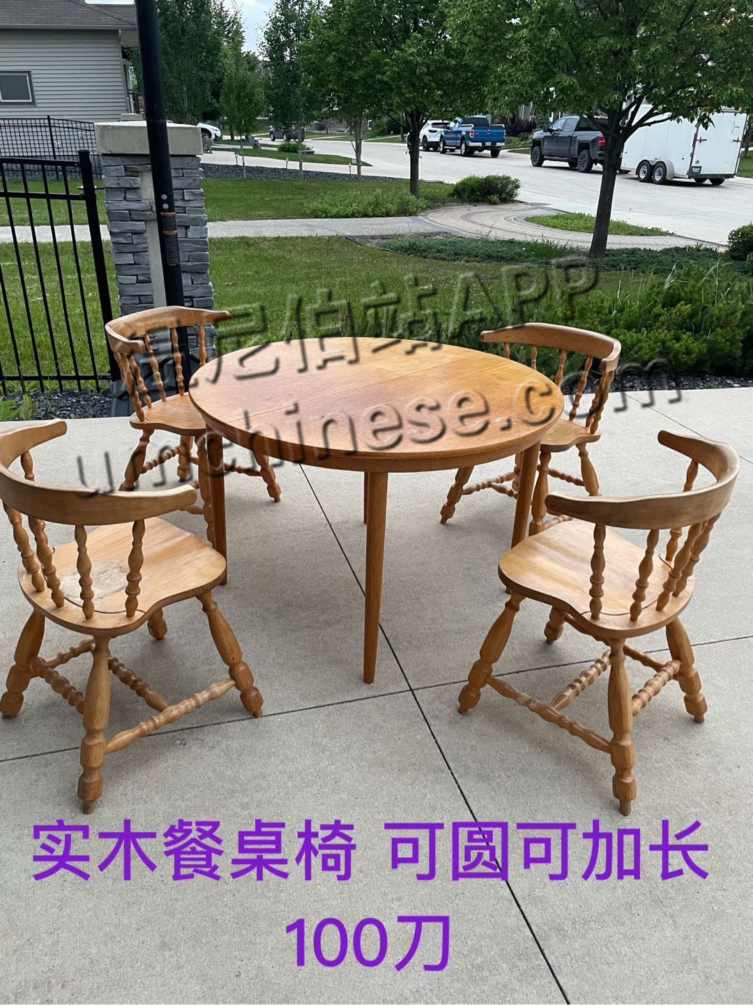 南区实木餐桌椅,一张桌子带四把椅子,桌子可圆可加长,100刀,南区bw,4312776058,短信联系。