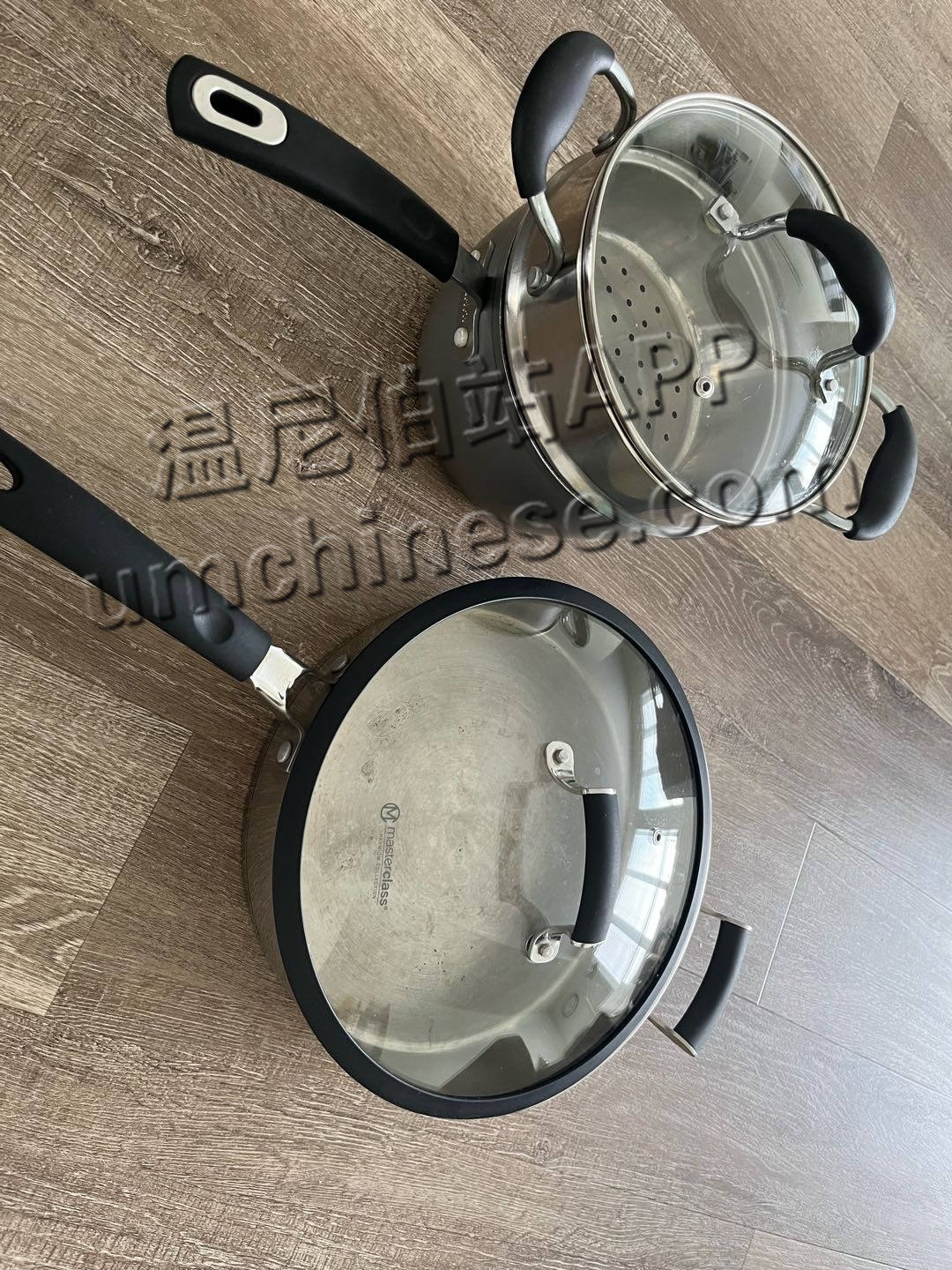 不锈钢平底锅,和小蒸锅。蒸锅有点变形,不影响使用