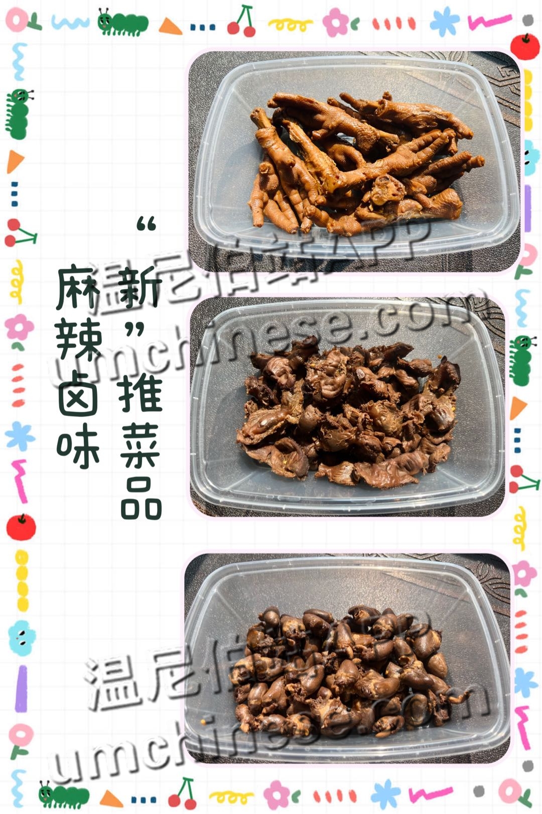独特秘制配料制作的卤味,香鲜美味,具有香,辣,麻,酥,嫩的特点,甜中带辣,辣中带麻,麻中带香,使人垂涎三尺。 欢迎添加微信号:WNCook2023 南区免运费