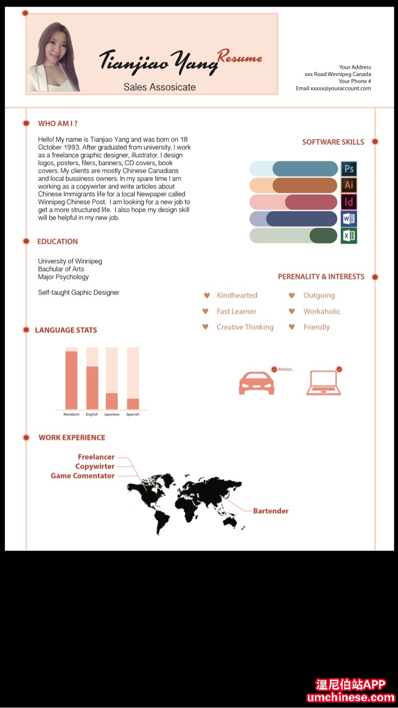 也许你正缺一份美观吸睛的简历! 加微信Tiffanyjiaojiao 制作原创美观简历 帮你摆脱无业游民身份!