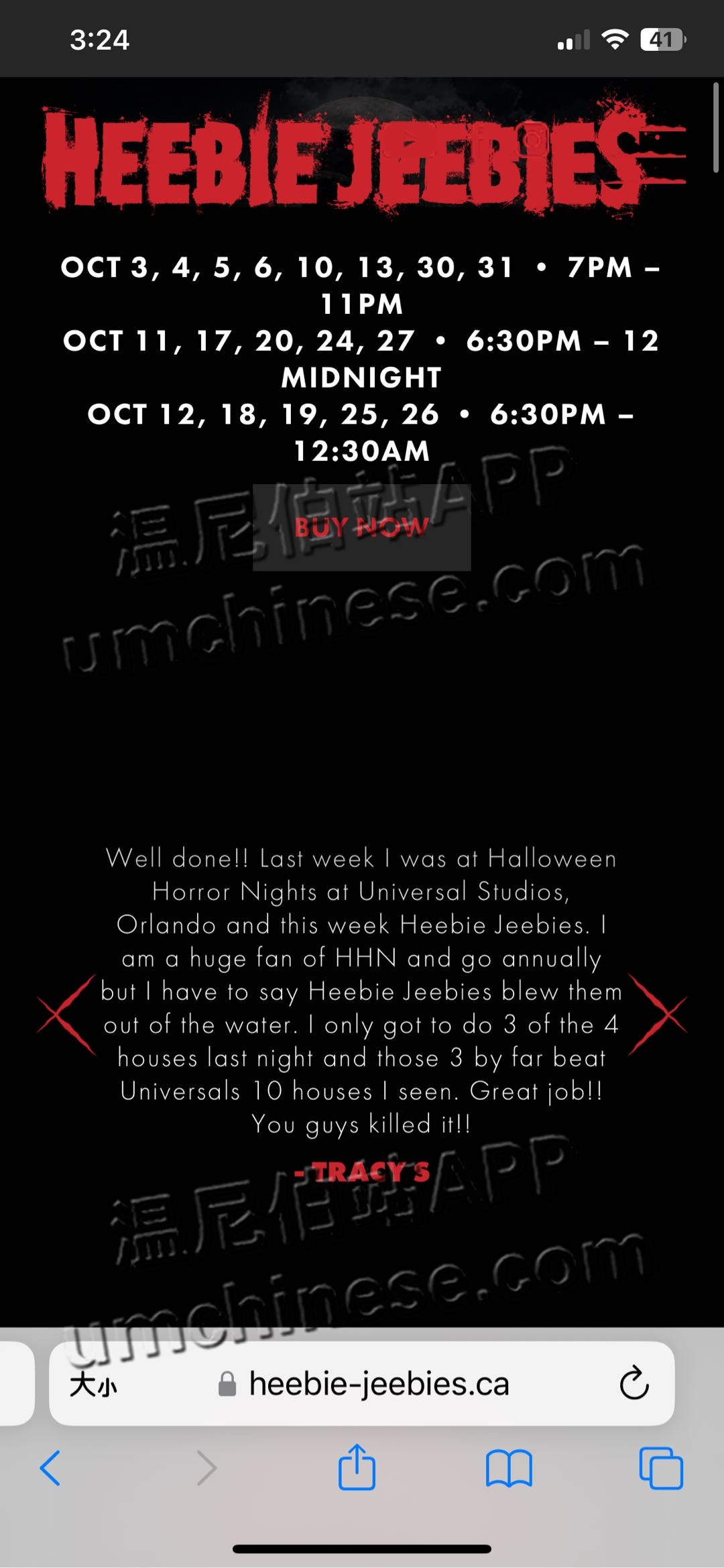 搬运烟酒铺-6年老店 Heebie Jeebies(可谷歌Winnipeg的) 10月份开始 温尼伯最大的鬼屋开放啦 物超所值 NPC和5大鬼屋 氛围拉满 官网票税后8折 告诉我时间日期就可以 几张都可以一起买 无限制! 插队票也可以买 也是8 ...