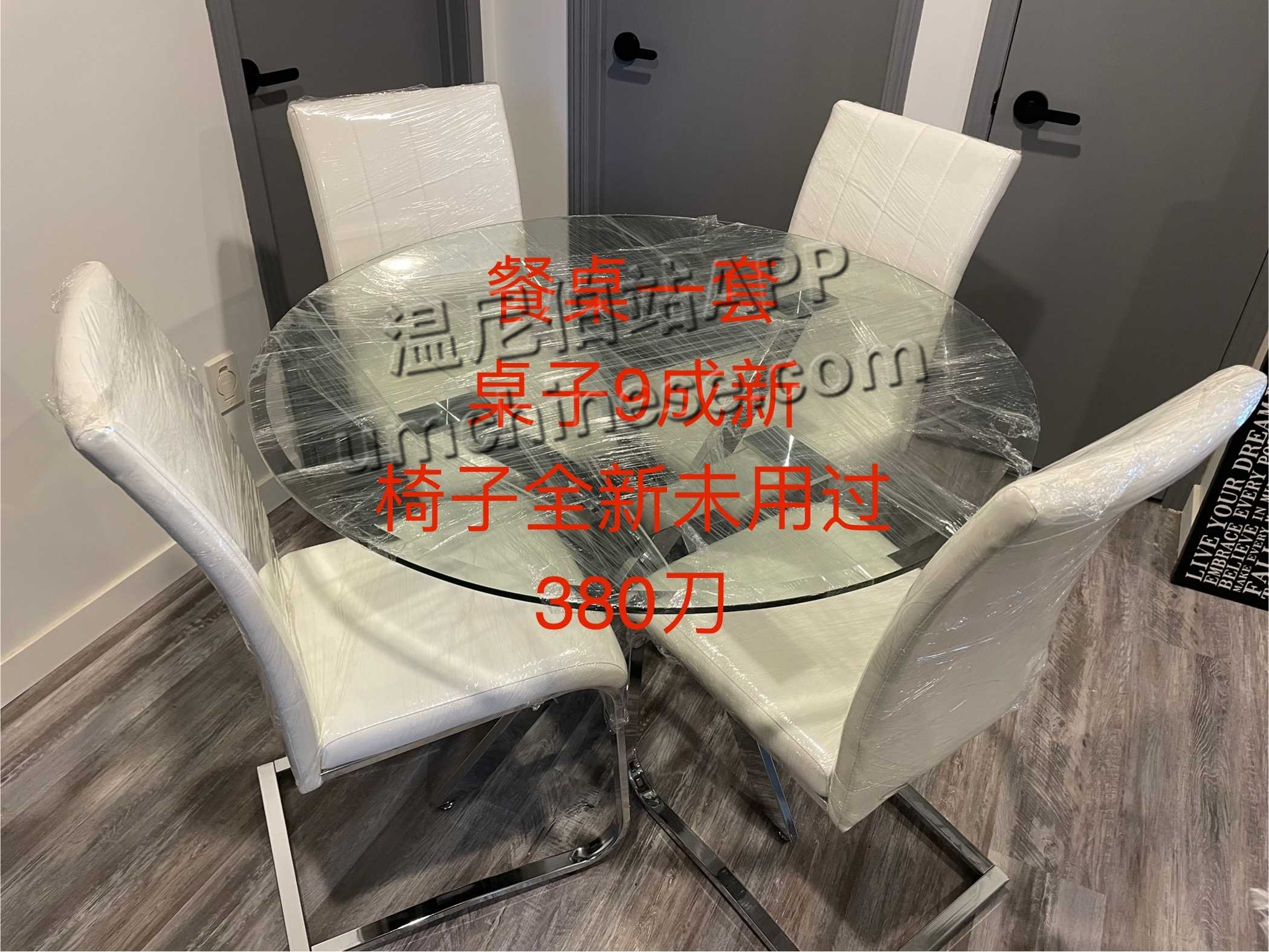 1. the brick 圆形餐桌一套,桌子九成新,4把椅子全新 380刀 2. the brick 长方形餐桌一套,只在showhome 展示过一次,原价1300多刀,现在600刀,有两套可以挑 南区自取 短信联系:4315542389