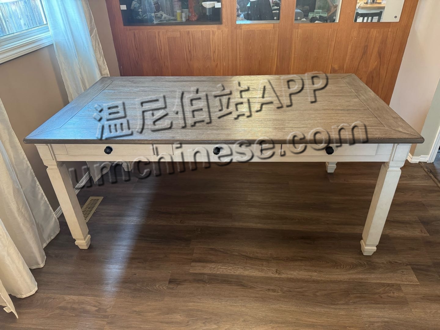 送塑料保护膜/99新The Brick实木餐桌带6个抽屉送一把配套椅子$300