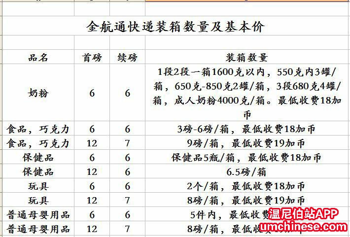 金航通快递是在温尼伯正规注册公司,与锦程快递合作,承揽快递业务。即日起到6月30日让利促销,发往中国的奶粉、保健品和食品等快件$5.5/磅,安全快捷,价格极具竞争力。同时生活用品、化妆品、包包等装箱数量大,不 ...