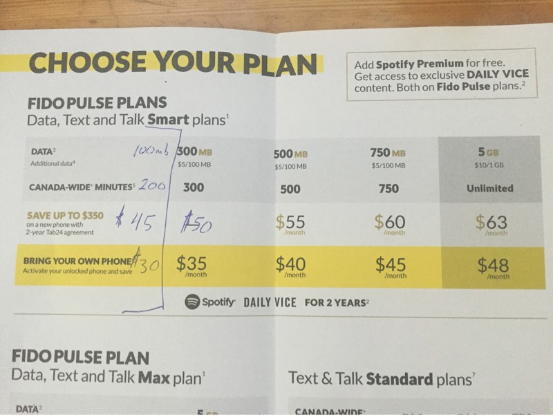 fido 30刀 有200分钟电话 100mb流量 无限短信 晚间免费电话!!网上是没有手写部分的,st.vital的小店里有!