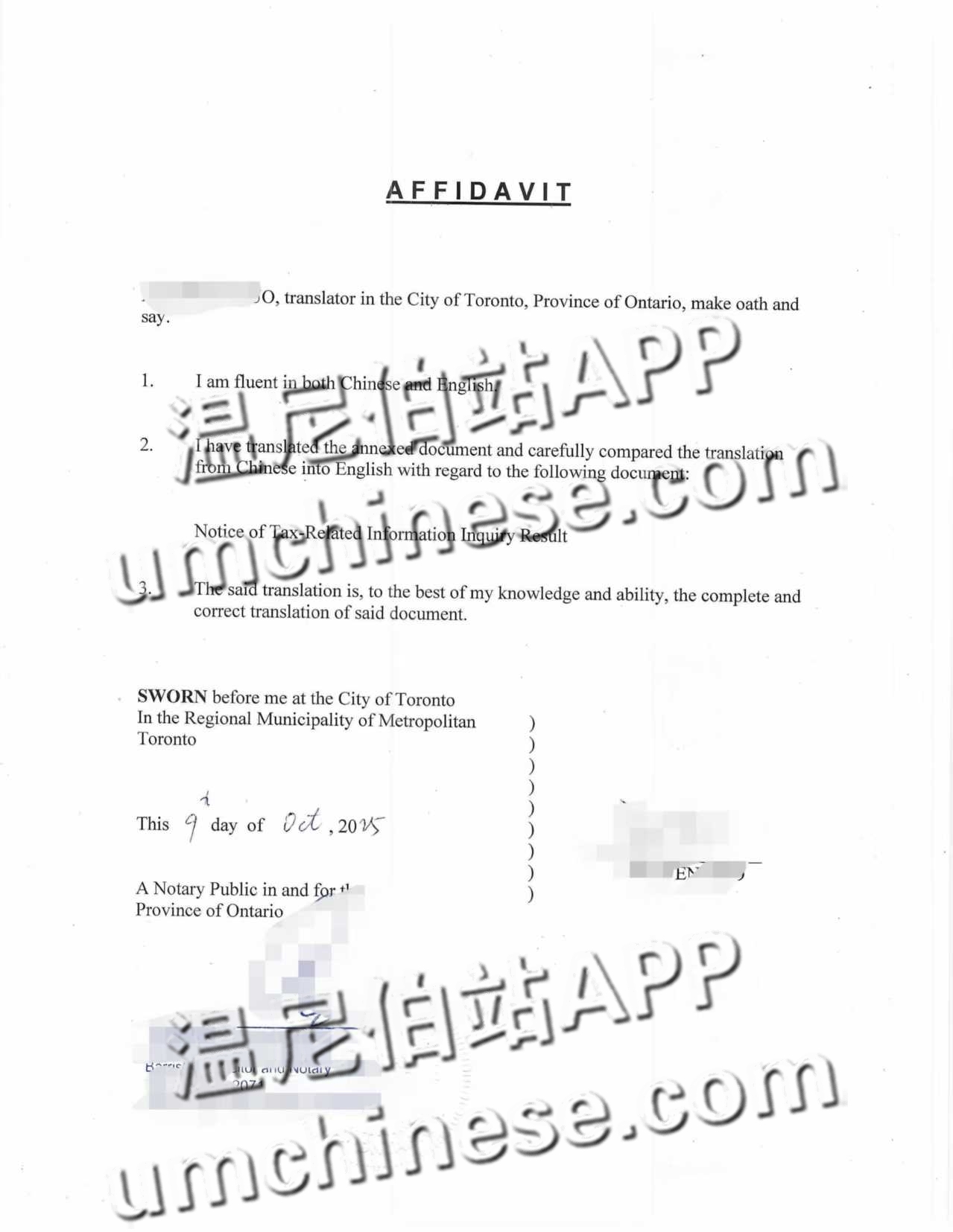 ——华译网公证处翻译公证案例 2024年12月初,加拿大税务局(CRA)在对一位永久居民的海外税务资料进行审查时,要求其提供中国境内的**《涉税信息查询结果告知书》英文公证翻译件,以核实其在中国的房产出租及个 ...