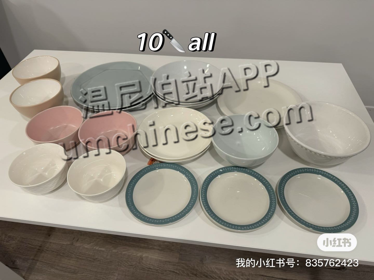 碗碟全套set(共20件)10 宜家折叠桌、收纳盒、挂钩set 10 野餐垫、冰爪、防水壳、便携露营灯、人字拖set 10 中国插线板、转换插头 10each