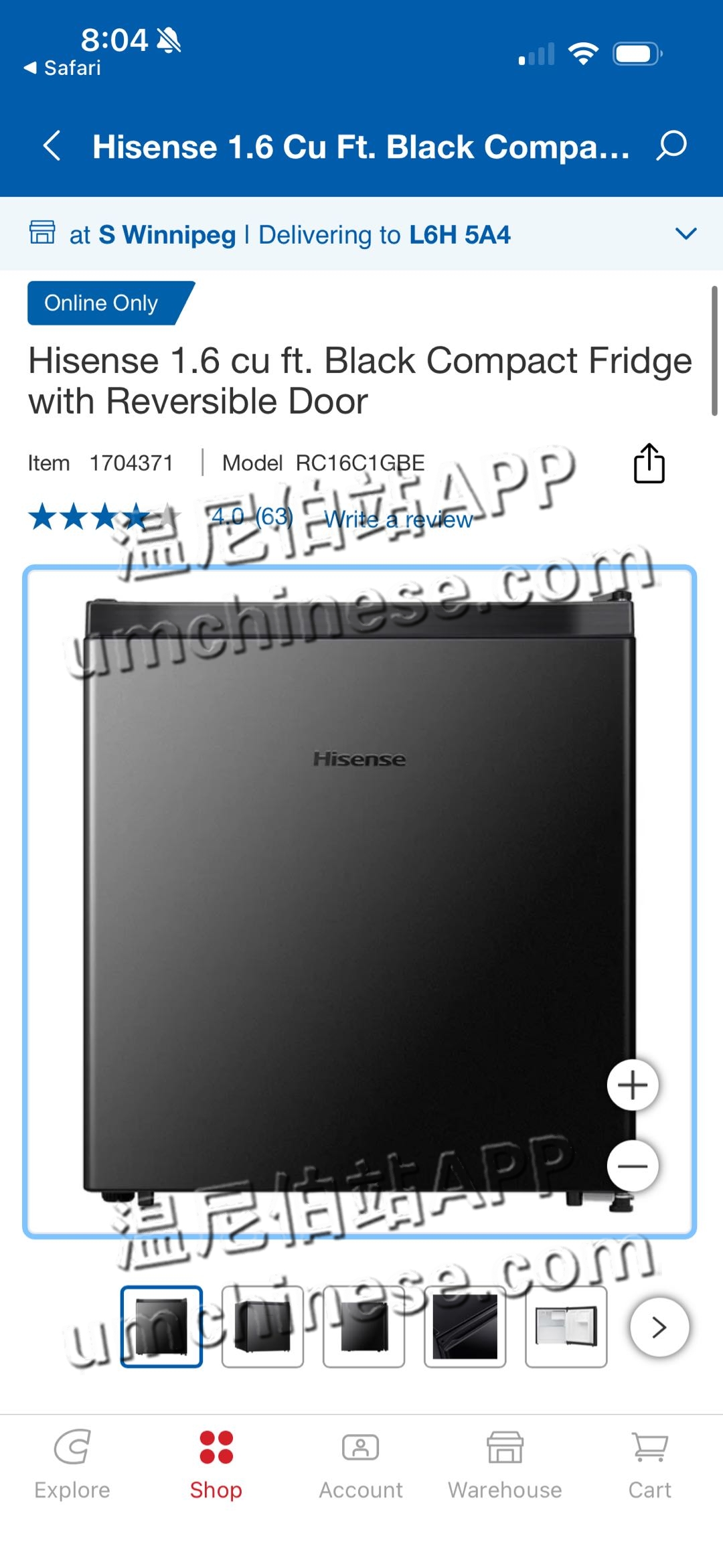 里面有一个小的冷冻室。具体可以搜索Costco 的item ID 1704371 看细节。没怎么用过,放了一段时间饮料。 短信4313058262。南区superstore附近自提(帮忙搬到车上)