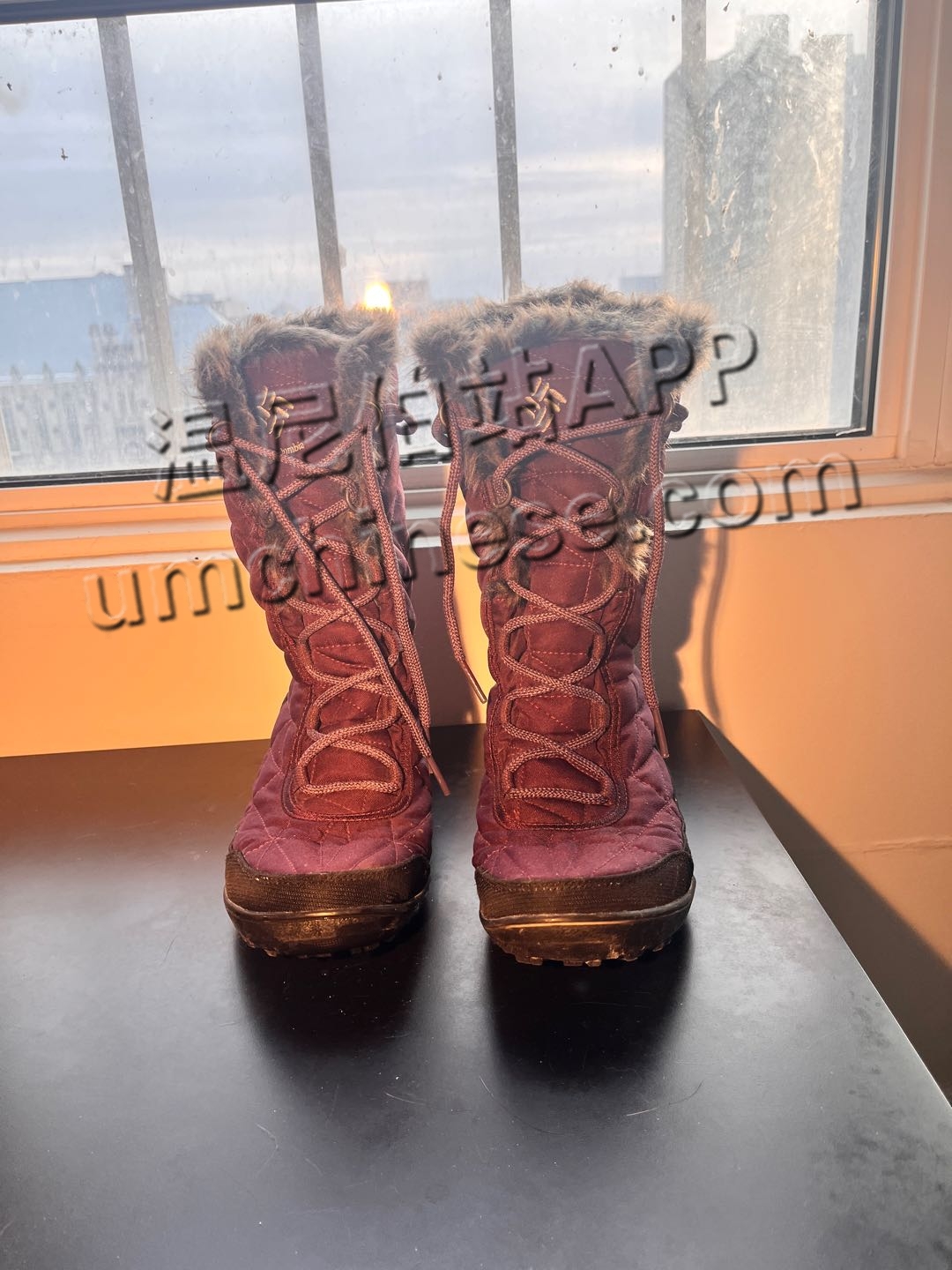1. Columbia 女款冬靴 * US 8码 * 我平时国内穿 38 码,这双穿着很合适 * 原价 $165 买的 * 穿的次数不多,八九成新 * 保暖、防水 * $40 2. Downholme 粉色真皮手套 * L码 * 但不是很大的那种,普通一米六左右个 ...
