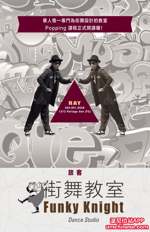 溫村唯一為華人街舞設計的舞室,對街舞有興趣的朋友不再沒門路ㄝ不再沒地方練舞了。 現在popping課開始招生中! 教課內容包括基礎律動、震點教學、電流、機械、滑步、等等~ 聯繫方式: 電話: ...