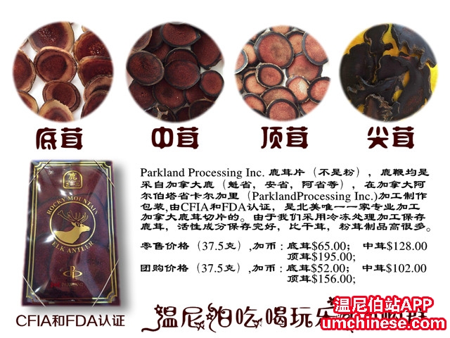温尼伯吃喝玩乐团购群团购产品一网打尽! 最近去温哥华旅游一周,特别去逛了一些参茸店,说几点体会:1.当你进温哥华的各个参茸店看看,就知道我们团购的产品价格太迷人了!!!举例:A : 我们团购的唯 ...