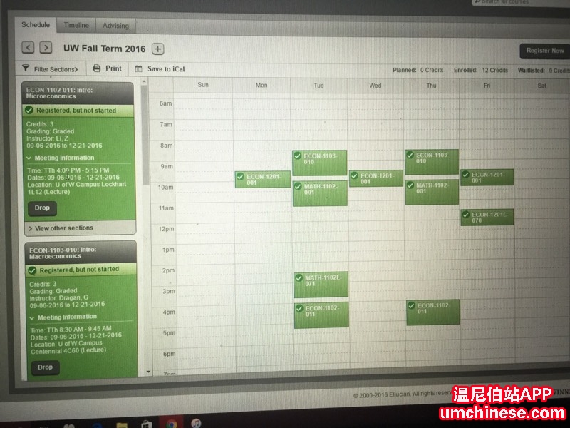 从50 bison 到 温尼伯大学。(课表如下)
